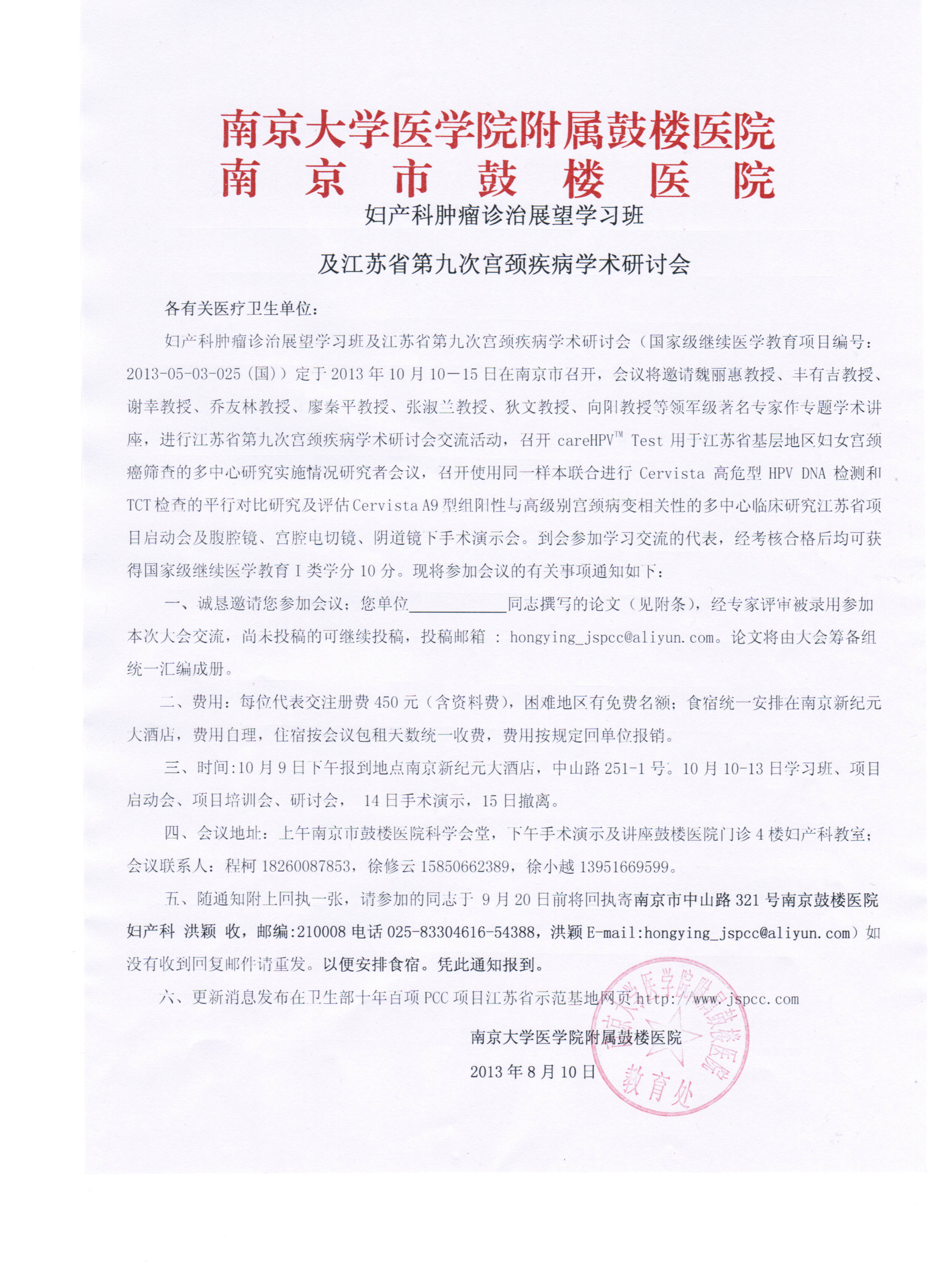 · 妇产科肿瘤诊治展望学习班及江苏省第九次宫颈疾病学术研讨会    [2013-7-13 19:50:25]