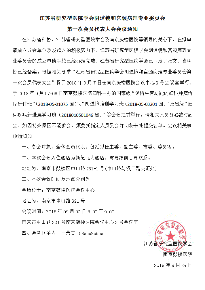 江苏省研究型医院学会阴道镜和宫颈病理专业委员会成立大会暨第一次会员代表大会