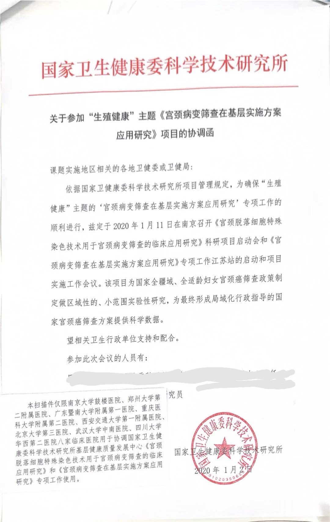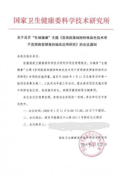 科研项目启动会和《宫颈病变筛查在基层实施方案应用研究》专项工作通知